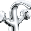 Тип: для умывальника, двухвентильный • Монтаж смесителя: настольный • Струя: высота 86 мм, глубина 116 мм
