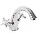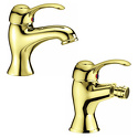 Назначение: для умывальника • Конструкция: двухрычажный • Монтаж: горизонтальный • Материал: латунь, покрытие - золото • Подводка: гибкая • Монтажные отверстия: 1 отверстие • Форма излива: традиционная • Душевая лейка в комплекте: нет • Аэратор: есть • Донный клапан в комплекте: есть