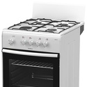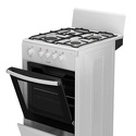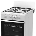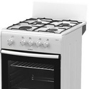 Тип конфорок: газовые • Рабочая поверхность: эмаль • Тип духовки: газовая • Размеры (ШxВxГ): 500x850x560 мм • Цвет: белый • Газовые конфорки: всего - 4 • Объем духовки: 50 л • Очистка духовки: традиционная • Тип управления: механическое • Переключатели: поворотные • Ящик для посуды: есть • Комплектация: противеней - 1, решетка