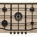Поверхность: варочная панель • Тип поверхности: газовая • Число конфорок: 5 • Установка: независимая • Газовые конфорки: всего - 5 (1 конфорка "Тройная корона") • Газ-контроль конфорок: есть • Тип управления: механическое • Переключатели: поворотные • Электроподжиг: есть, автоматический • Размеры: 750x510 мм • Размер ниши для встраивания: 550x480 мм • Цвет: панель - кремовый