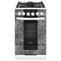 Тип конфорок: газовые • Рабочая поверхность: закаленное стекло • Тип духовки: газовая • Размеры (ШxВxГ): 500x850x585 мм • Цвет: мрамор • Газовые конфорки: всего - 4 • Объем духовки: 52 л • Гриль: есть • Газ-контроль духовки: есть • Очистка духовки: традиционная • Подсветка: есть • Вертел: есть • Тип управления: механическое • Переключатели: кнопочные, поворотные • Таймер: звуковой