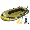 Надо брать полный комплект с веслами и насосом.Пусть дороже,но зато не надо бегать по магазинам и дороже выйдет. на яндекс маркете продается без комплекта, а с комплектом надо поискать.