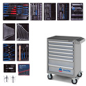 КомплектацияМодуль 1Набор отверток, съемник клипс и гибкий магнит, 19 предметов 9-31919MRМодуль 2Набор торцевых головок 1/2" с принадлежностями, 33 предмета 9-4333MR03Набор торцевых головок 3/8" с принадлежностями, 23 предмета 9-3523MRМодуль 3Набор ударных головок 1/2" и торцевых головок 1/4" с принадлежностями, 40 предметов 9-7540MRНабор торцевых насадок, шестигранники Г-образные и разрезные ключи, 31 предметов 9-90131MRМодуль 4Набор накидных ключей, 11 предметов 9-1711MRНабор комбинированных ключей, 16 предметов 9-1216MR03Модуль 5Набор переставные клещи, разводной ключ и молоток, 3 предмета 9-90103PP02Набор съемников стопорных колец, пассатижей и бокорезов, 7 предметов 9-40207GPМодуль 6Набор отвертка ударная 5/16" с принадлежностями, 6 предметов 9-4128FRВспомогательный инструментНабор выколоток, бородков, кернеров, 10 предметов 1010PRСъемник подшипников 2-х захватный 100 мм 7962-04Съемник подшипников 3-х захватный 100 мм 7963-04Тележка инструментальная7 выдвижных полок, цвет синий Количество предметов: 204Количество ложементов: 10Размеры тележки в сборе: 460 х 680 х 955 ммУпаковка: картонВес: 86,7 кг