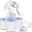 КомплектацияОдноразовые вкладыши для бюстгальтера 2 шт.Подушечка 1 шт.Комплект для сцеживания с ручкой 1 шт.Чаши для хранения и 1 адаптер 3 шт.0 м+ соска 1 шт.
