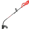 Двигатель: электрический, тип триммера: переносной, мощность электродвигателя: 1000 Вт, режущий элемент триммера: леска, ширина скашивания: 38 см, конструкция штанги: изогнутая, количество колес: нет