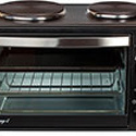 Тип конфорок: электрические • Рабочая поверхность: эмаль • Тип духовки: электрическая • Цвет: черный • Конфигурация электрических конфорок: 1 x 1000 g 1 x 600 g • Электрические конфорки: всего - 2 • Объем духовки: 30 л • Максимальная температура духовки: 250 °С • Тип управления: механическое • Переключатели: поворотные • Комплектация: противеней - 1, решетка