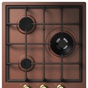 Поверхность: варочная панель • Тип поверхности: газовая • Число конфорок: 3 • Установка: независимая • Газовые конфорки: всего - 3 • Газ-контроль конфорок: есть • Тип управления: механическое • Переключатели: поворотные • Электроподжиг: есть, автоматический • Размеры: 450x510x38 мм • Размер ниши для встраивания: 415x490 мм • Цвет: панель - медь